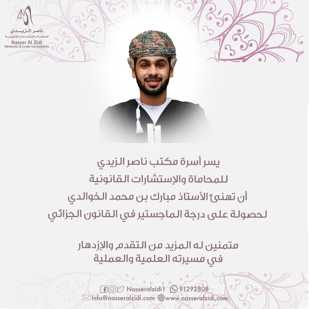 #كوادر_عمانية#مكتب_ناصر_الزيدي_للمحاماة#سلطنة_عمان#مسقط#الخوير#حقوق#قانون#العدل#استشارات#محكمة#محاميpic.twitter.com/DGp5FjtchK