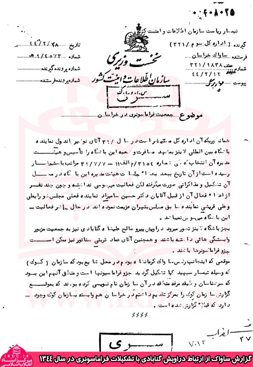 #ساواک از ارتباط#دراویش_گنابادی با تشکیلات#فراماسونری در سال ۱۳۴۴#نهان_خانه#نور_علی_تابندهpic.twitter.com/SuUYev7Eft