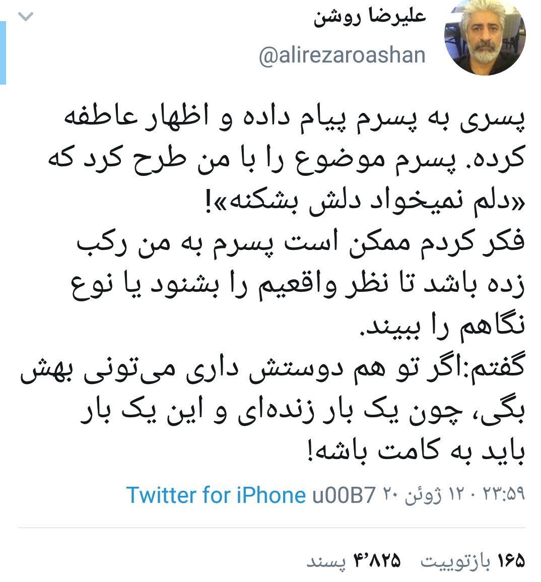 اين توييت عليرضا روشن، يكى از اعضاى فرقه