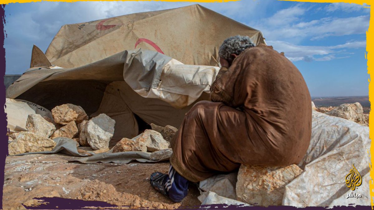 بعد انهيار خيمته جراء العاصفة التي ضربت شمال