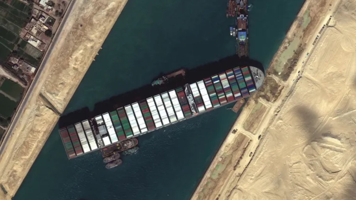 #إيفر_جيفن" في#قناة_السويس، وتسببت في غلق القناة وتعطيل حركة التجارة العالمية.#عينك_على_العالمpic.twitter.com/sgcceSFTQ1
