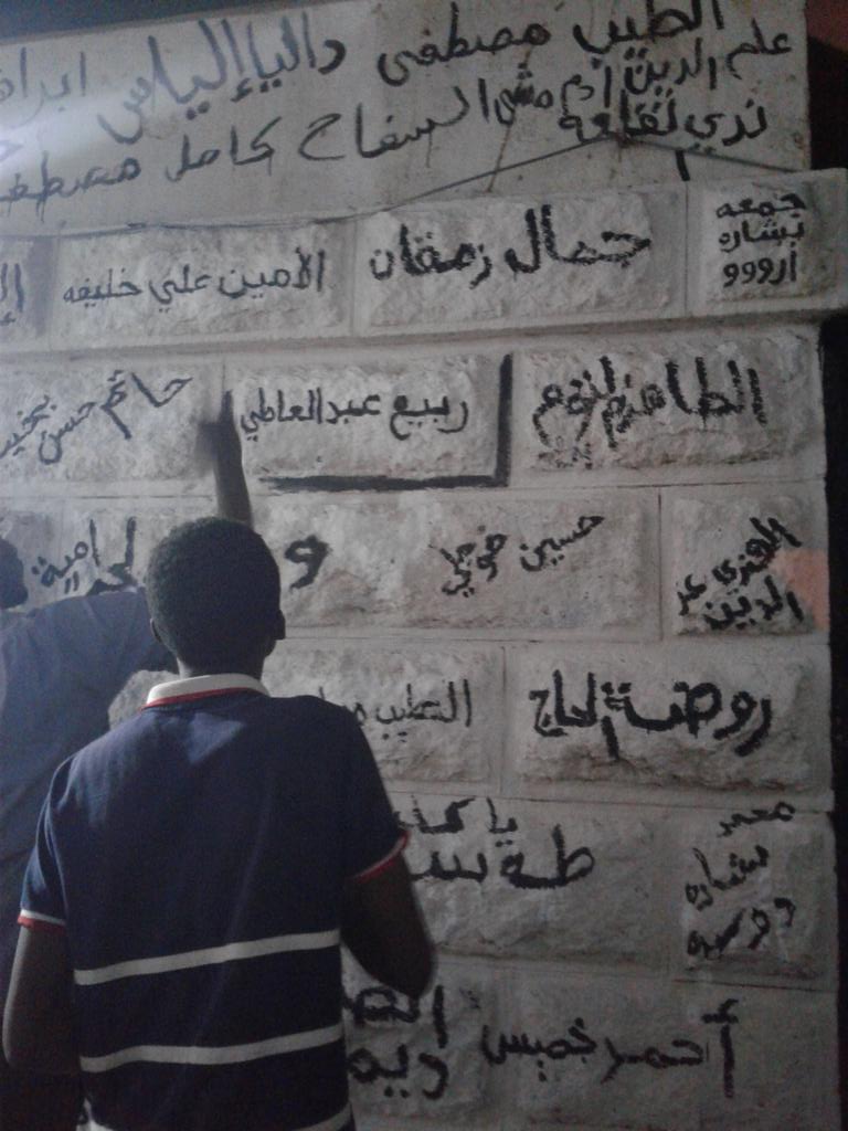 I love thissssss!!!!! The wall of wanted criminals at the Khartoum sit-in, with the names of government officials and agents of the state
