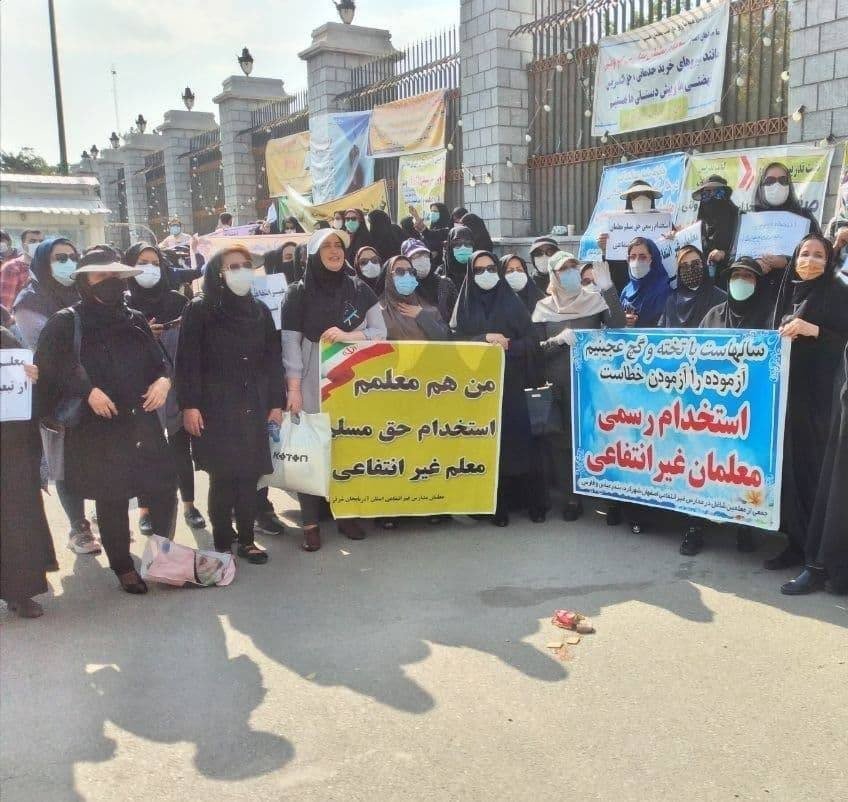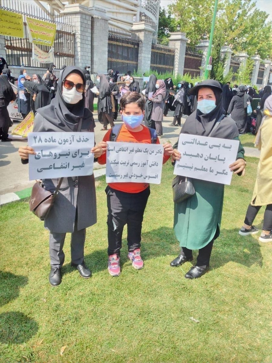 #معلمان در مقابل مجلس: «مادر من یک#معلم غیرانتفاعی است. دانشآموز رسمی تربیت میکند. افسوس خودش غیررسمی است.»#راى_من_سرنگونىpic.twitter.com/NgNXTUQ4jl