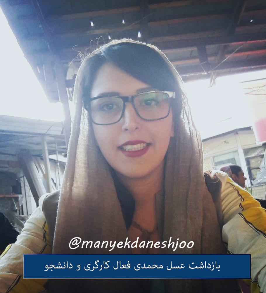 #من_یک_دانشجو : عسل محمدی دانشجوی فعال کارگری و دانشجوی دانشگاه آزاد صبح امروز با یورش نیروهای امنیتی به منزلش دستگیر شد.مقامات قضایی دلیل بازداشت#عسل_محمدی را اقدام پیشگیرانه برای حمایت نکردن از کارگران # هفت_تپه و#ملی_فولاد اعلام کردند.#اعتراضات_سراسریpic.twitter.com/cYI5qWbQgv