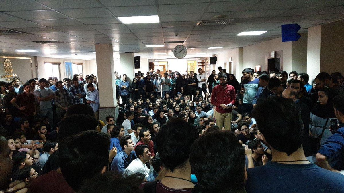 #من_یک_دانشجو : تجمع اعتراضی دانشجویان دانشگاه#خواجه_نصیر در تهران در اعتراض به پولی سازی آموزش، امکانات آموزشی و رفاهی و.. دانشجویان شعار میدهند: ننگ ما، ننگ ما، مسئول بی درد ما... دانشجو، دانشجو حمایت حمایت، تدبیر این وزارت علم است یا تجارت... هم اکنون دانشجویان در سالن پردیسpic.twitter.com/KP6J0oGUUU