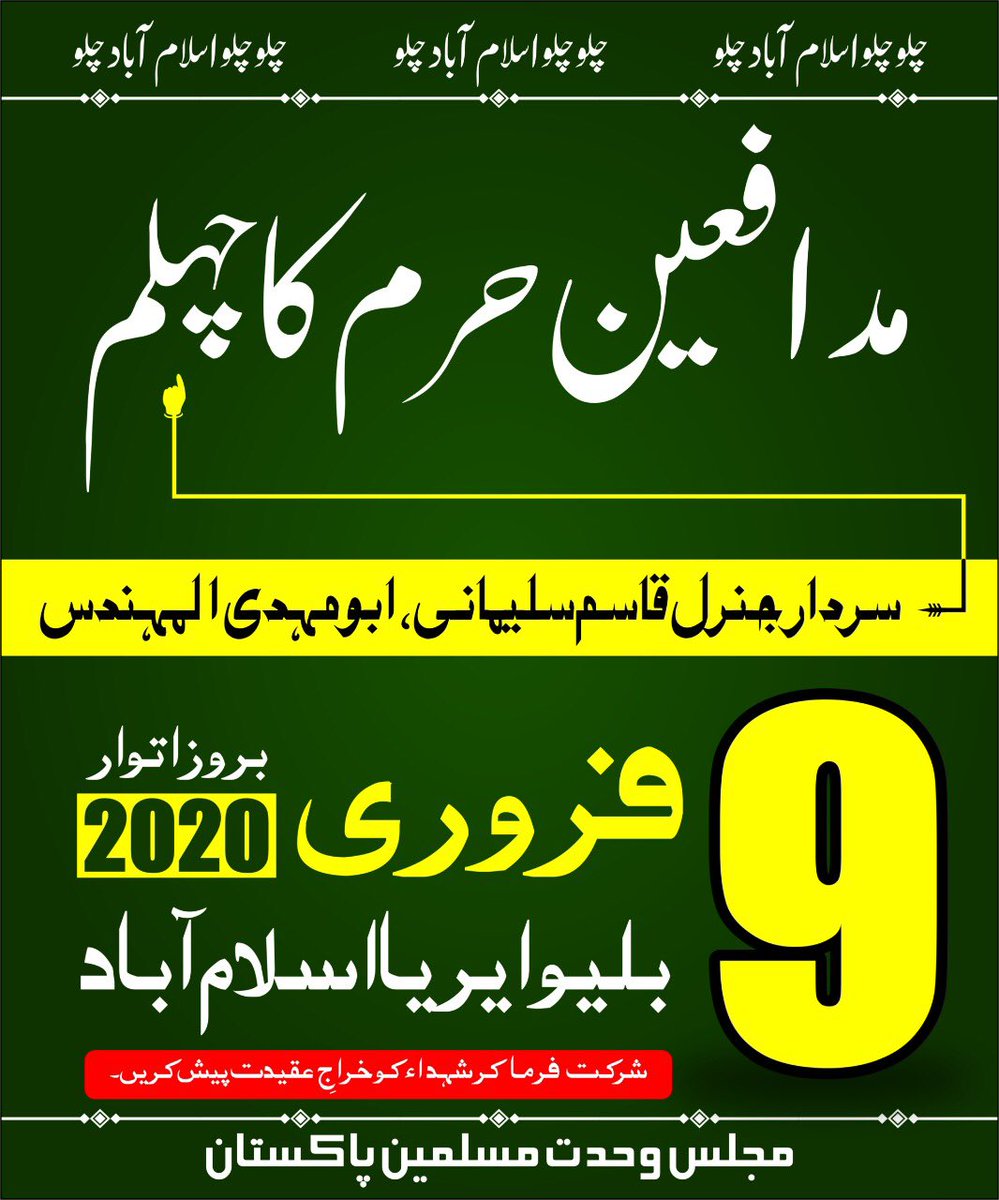 #Soleimani will be remembered by Pakistanis in a huge event on 9th of February These Pakistanis are not only loyal but understand that resistance to US hegemony will need partners from the region and free Pakistani of the of the clutches of Oligarchs and dictators#نوفروری pic.twitter.com/MdBmwKkXXR