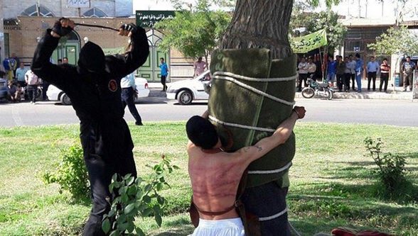 مزدوران رژیم جنایتکار ایران در حال اجرای حکم شلاق در ملا عام در