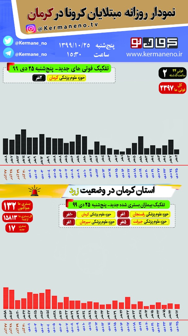 ۱۷ مورد جدید ابتلای به #کووید_۱۹ نیز در بیمارستان های سطح#استان_کرمان بستری شدند.@kermane_nopic.twitter.com/5M5ZGbYsua