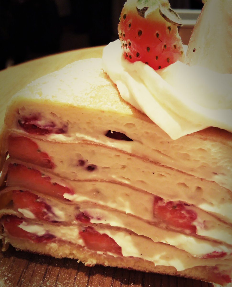 アフタヌーンティー・ティールームの3日間限定「いちごの日」メニュー、ラブアンドテーブルでは、店舗限定ミルクレープ。 60食で終了と聞き、40分ほど前から並びました(笑)
