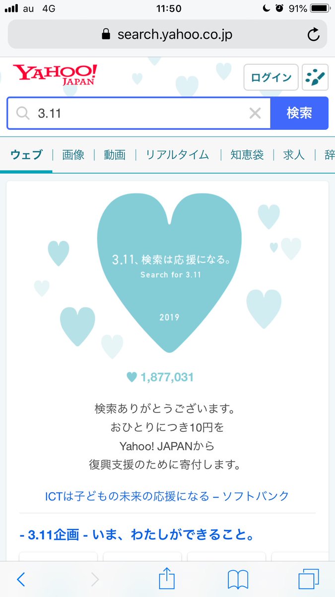 Today's the 8th anniversary of the Tohoku earthquake & tsunami. Search 3.11 on Yahoo Japan today, and