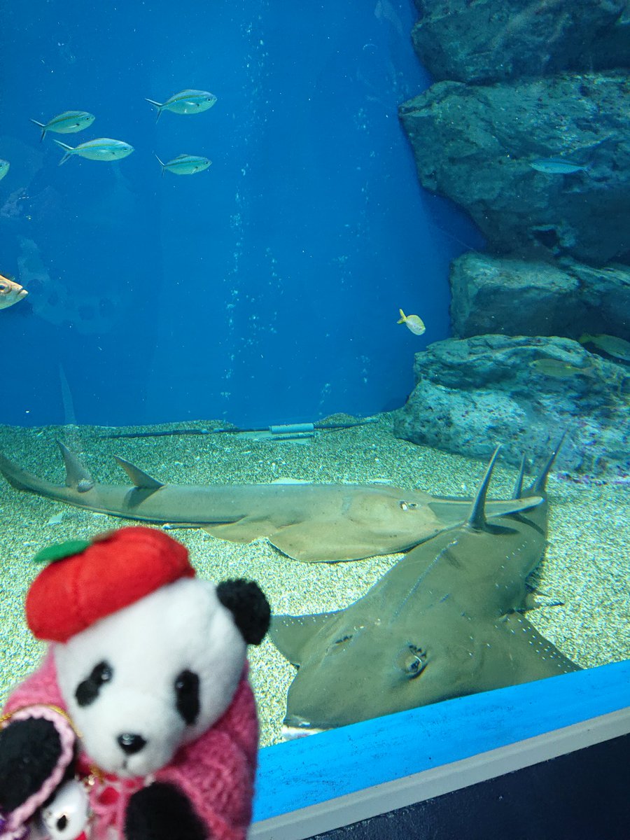 シャン美:こたつでお芋さん食べてー、キラキラクラゲさんとマンタさんと…これはサメさん?おさかなさんたくさん見たですよ