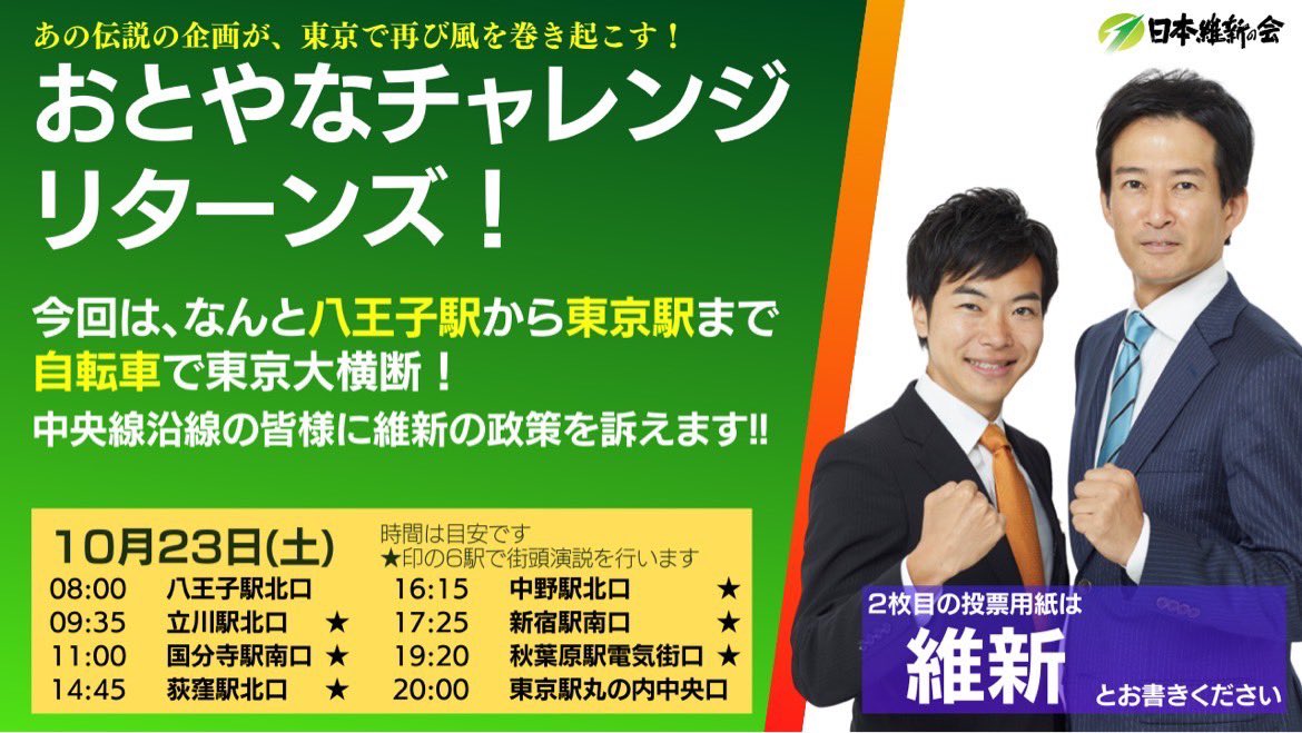 #日本維新の会#あたらしい党#おときた駿#やながせ裕文#おとやな@otokita@yanagase_ootakupic.twitter.com/kcFlnK0zRD
