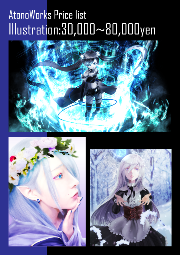 Atonoworksでの受注価格になります。 あくまで僕が受ける仕事の額ですので、ほかの絵師さんと異なる場合がございます。予めご了承ください。 詳しい事はDMまたはGmailまでご連絡ください。