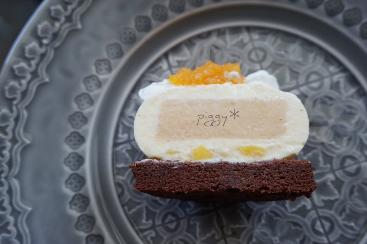 中は2層のチョコムースに食感を出すためにフィレンティーヌがはいってるよ