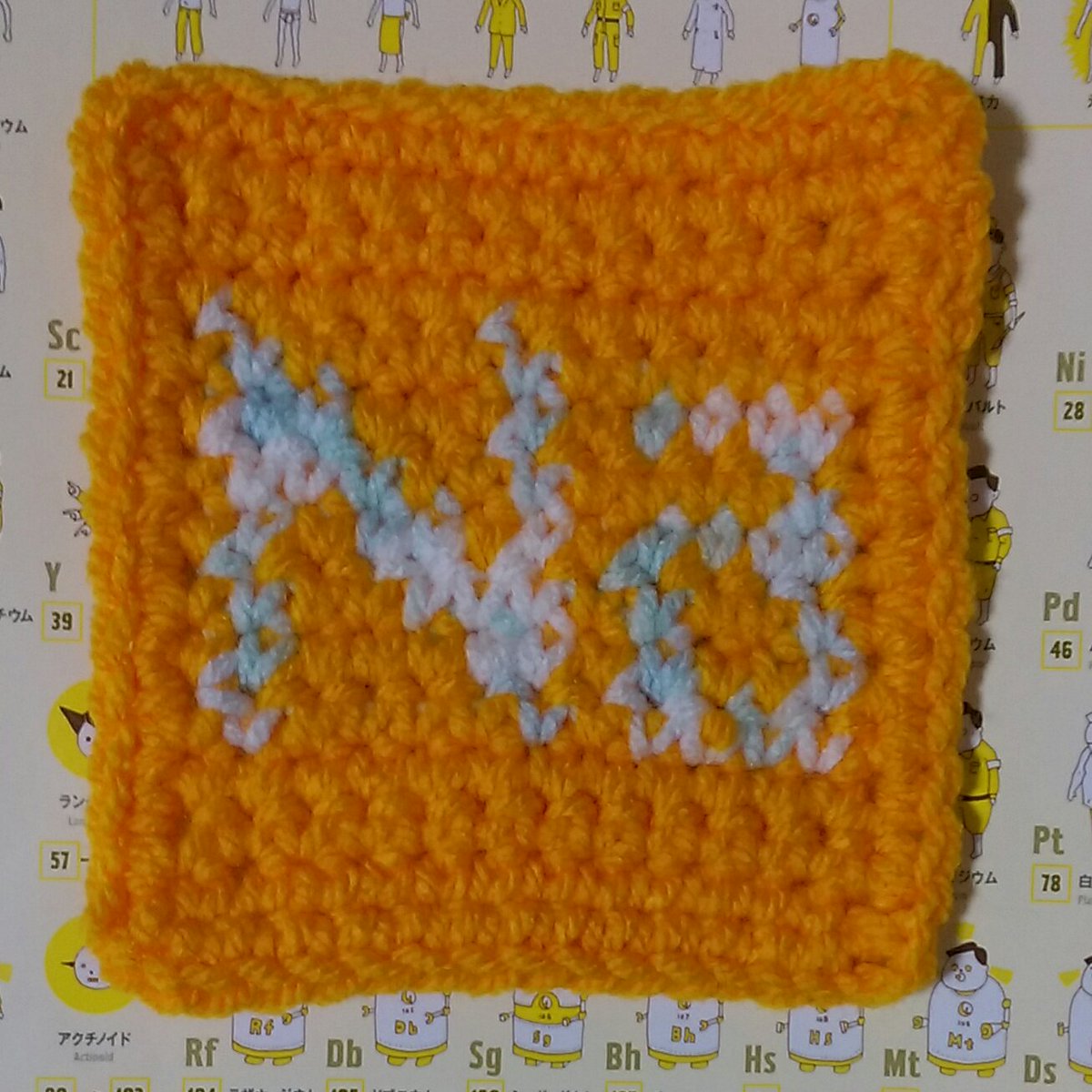 #元素記号#かぎ針編み ナトリウムの元素記号の色を塩のイメージからソーダライトやラピスラズリのイメージに変えました。 pic.twitter.com/FsDJSKABrL