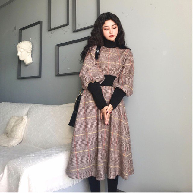 チェックワンピースのご紹介です♡ 韓国風デザインで、バルーンスリーブにハイウエストでシルエットが可愛いです! https://goo.gl/hiQWLH