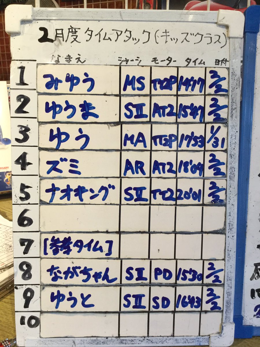 【タイム更新】(オープンクラス)(キッズクラス) 昨日は両クラス共にタイム更新はありませんでした。 是非2月度のコースを楽しみにいらして下さい。お待ちしています
