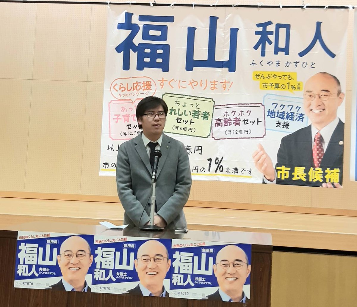 #福山和人 登場です。 『悩みに小さいも大きいもない』 『私に出来るのは1つ1つお聞きして解決し笑顔で暮らして欲しい』 『口角あげてくらしよくしましょ』 本当に心に寄り添う福山和人さん 何がなんでも市長にするぞ#つなぐ京都2020#京都市長選挙#人#夢#生業#命#くらし pic.twitter.com/KQTPe8Vseu
