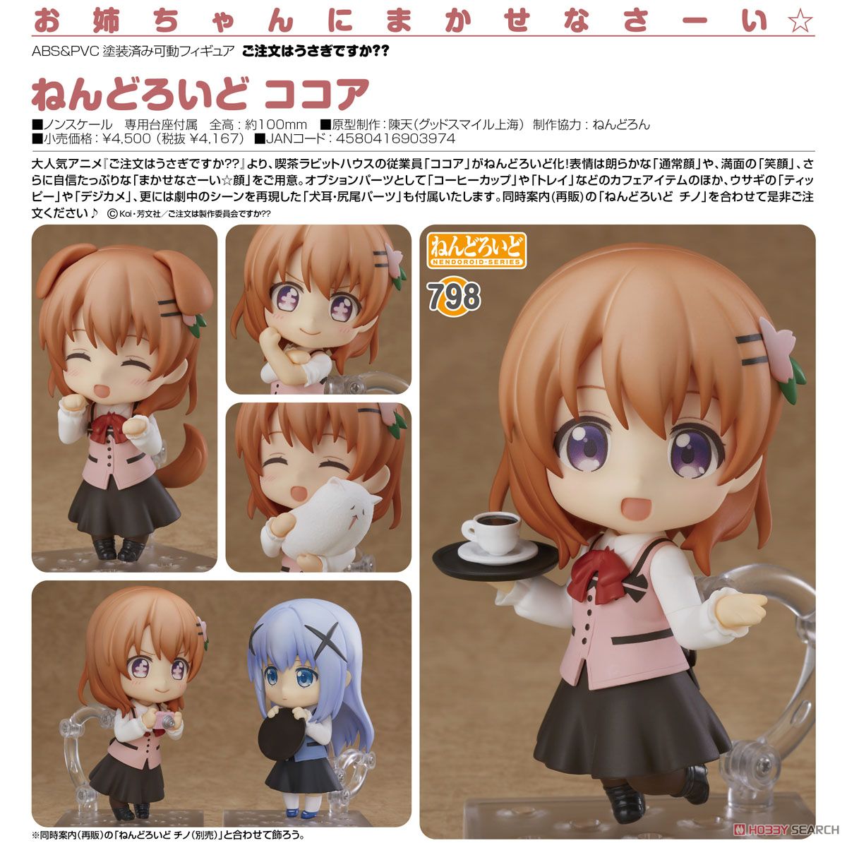【12月予約】 ねんどろいど ココア (グッドスマイルカンパニー) 予約開始です!→ http://ow.ly/oHJn30dSWAq 『ご注文はうさぎですか??』より、喫茶ラビットハウスの従業員 ココアがねんどろいど化! チノも再販決定♪