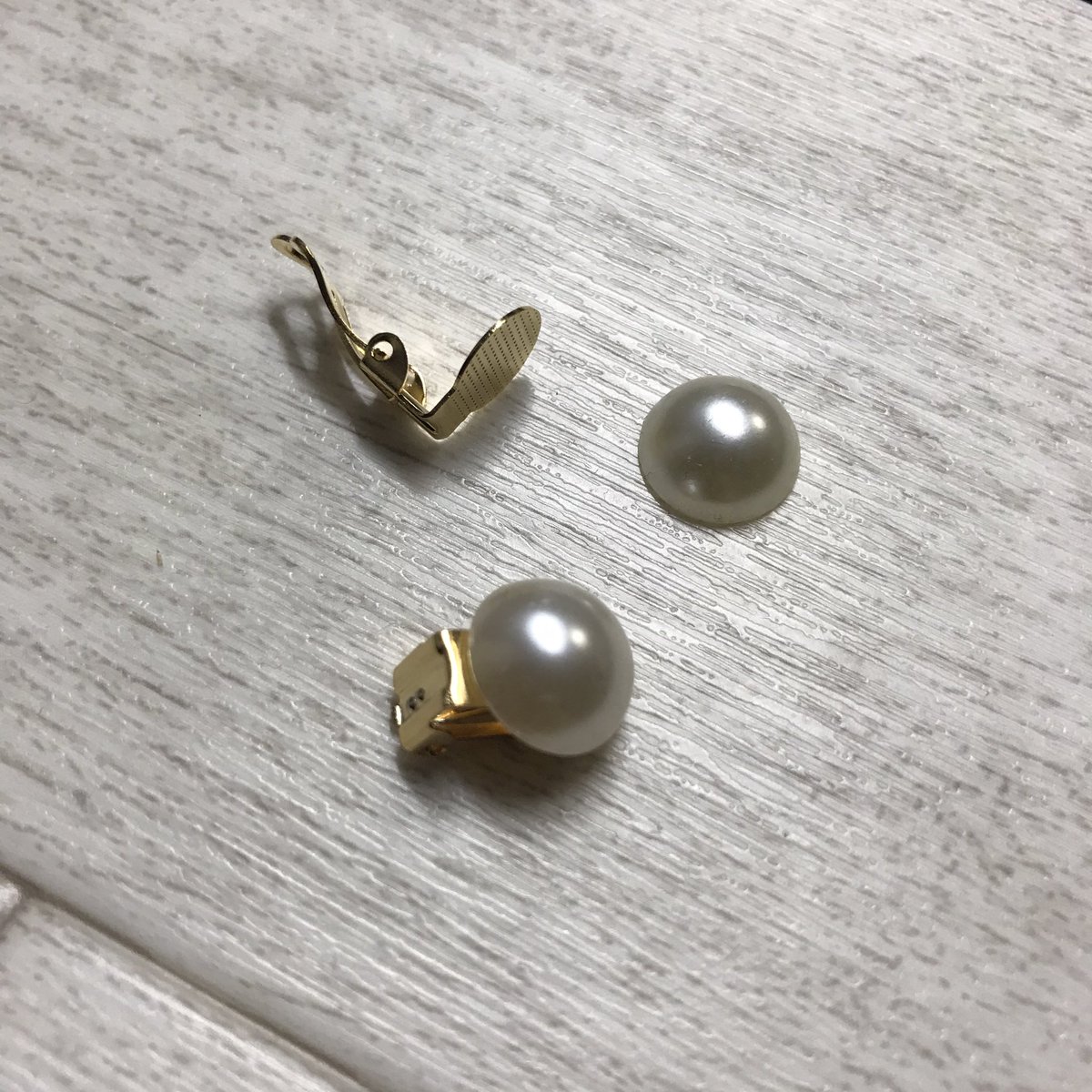 キノコの養殖所!? いえいえ、パールとイヤリングクリップを接着剤でくっつけたものを乾かしているのです…笑