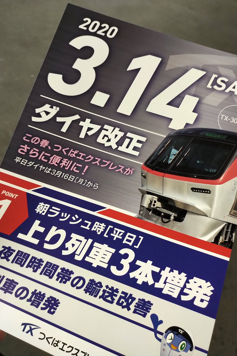 #TX のダイヤ改正 https://www.chibanippo.co.jp/news/economics/663940 …#つくばエクスプレス -