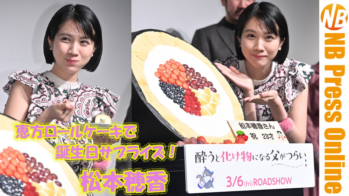 #松本穂香 の誕生日をサプライズ祝福! 『#酔うと化け物になる父がつらい』完成披露試写会#渋川清彦#今泉佑唯#ともさかりえ#片桐健滋 監督#GOODONTHEREEL https://youtu.be/3fTkfPXvWr0 pic.twitter.com/IawCB3TbkE