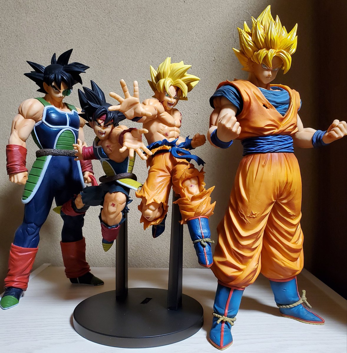 今日はここまで! バーダックと言えば、赤いバンダナ。 悟空と言えば、超サイヤ人の金髪。 2体を象徴する部分が際立つ様に、その部分のみカラーリング。 グラデは一切使わず、ベタ塗りでの表現に挑戦中! 完成まであと少し!
