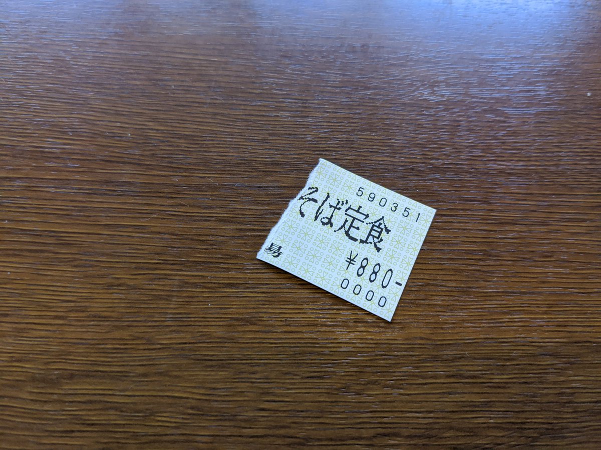 半券じゃないタイプの食券を千切って無理やり半券にするタイプの食堂(五平餅そば定食だったけど五平餅側持ってかれた)