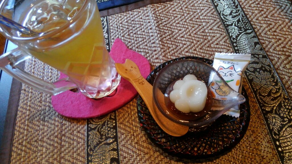 #ねんねこ家 に行ってきた。ニャポリタンとニャンカレーと肉球白玉ŧ‹"ŧ‹"ŧ‹"ŧ‹" タクヤさんとこの娘さん(名前わからなかったな)に接客してもらったよ。お爺ちゃんだけどちゃんと接客してくれるの。営業上手ねぇ。 pic.twitter.com/tBc63W37BW