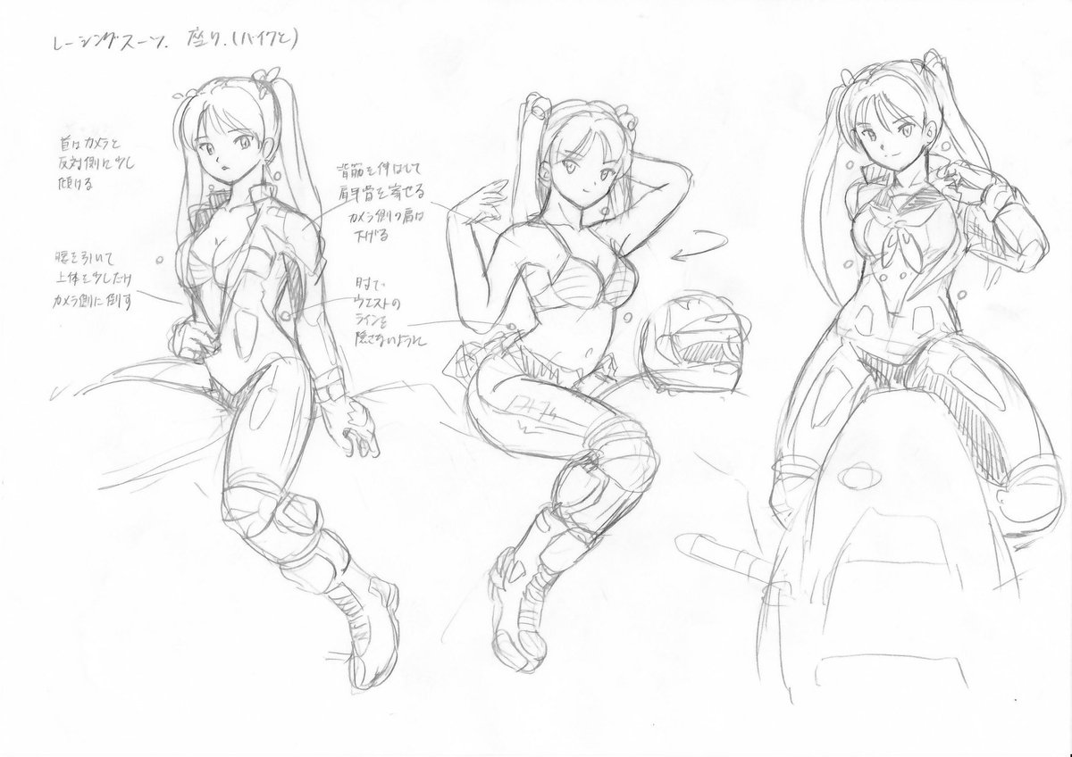 撮影スケッチお蔵出し(4) 劇中で使用されている本物のレーシングスーツを入手することができましたので、カメラマン持ち込みで衣装を用意しました。ちょっとサイズが小さかったので、上半身までカバーできなかったのはやや心残りです。