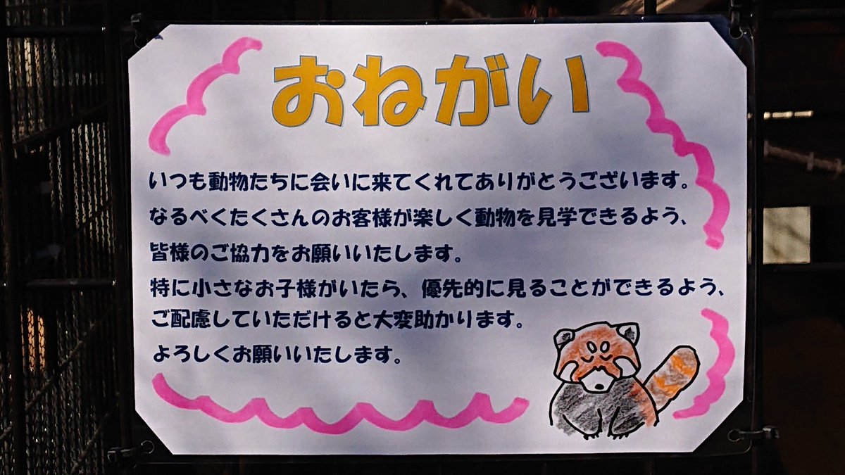 今日はひまわりの市川ラストデイ。 この土日のためだと思いますが、ひまわりのところにこのような「おねがい」が掲示されていました。 今回は場所の独り占めや動物の前で大声で騒いだり…など無く、動物も人もストレスの無い1日となりますように…
