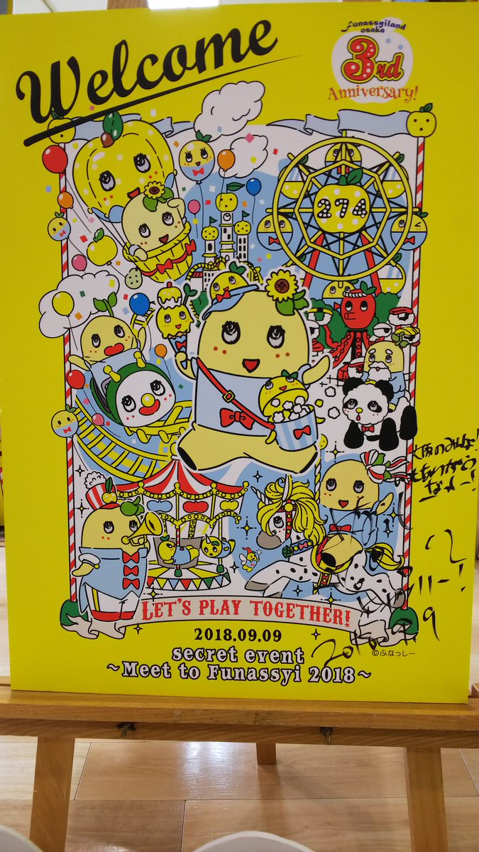 @funassyi ふなちゃーん♪ ふなっしーLAND大阪梅田店さんに今日のウェルカムボードが飾られてたよ! 今日はふなちゃんに会えなくて残念だったけどおせんべいを買いに来ました♪ヽ(´▽`)/ また大阪に来てや!!#ふなっしーLAND大阪梅田#おせんべい激カワpic.twitter.com/ikzGLPbp6f