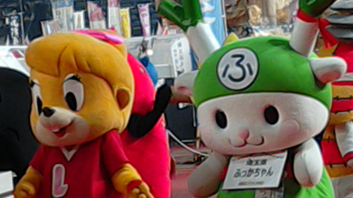 #ふるさと祭り#ふるさと祭り東京 14日の#ご当地キャラ体育祭 ④ お顔が隠れちゃってる#ドンチャック#ララ#ふっかちゃん 仁王立ち