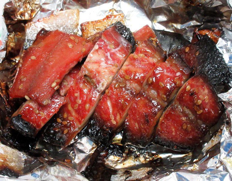 先日、海鮮商材のメーカーさんが試食で持って来て下さった何かのお魚のみりん干し。魚の種類がいくつかあって、同じ