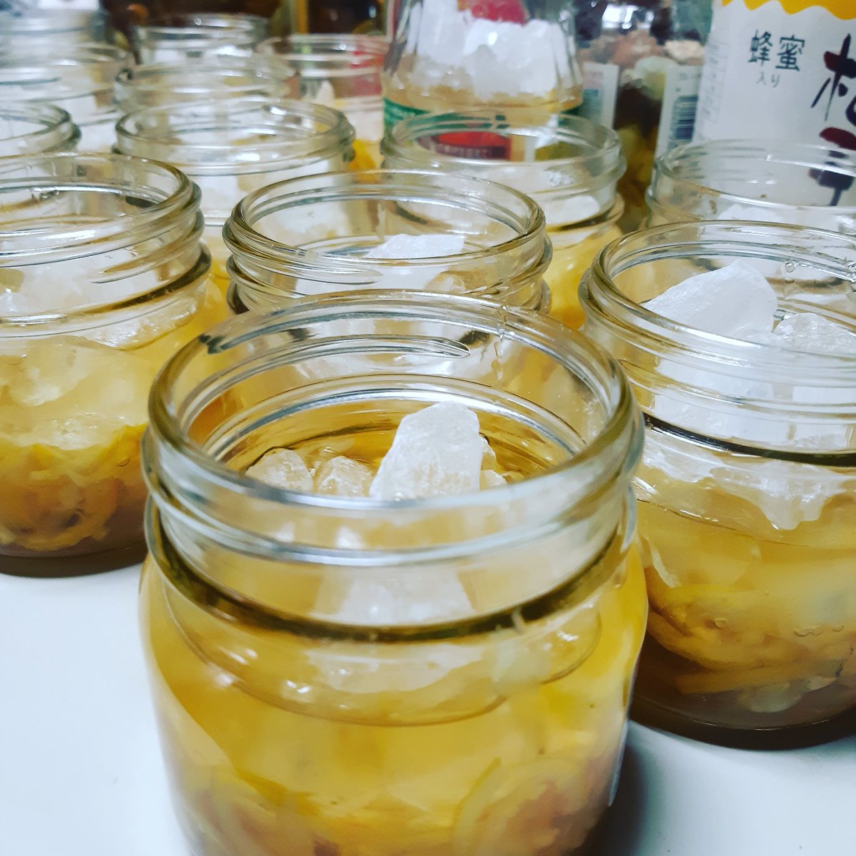 #ゆず茶 初めて作ったけど、別に脱気が必要なかったことを後から知るww 氷砂糖予定より早く溶けてしまう(苦笑) まぁ「失敗は成功の母」というから、残念な結果になっても次のチャンスにかけよう!www pic.twitter.com/Z0twpDTf8W