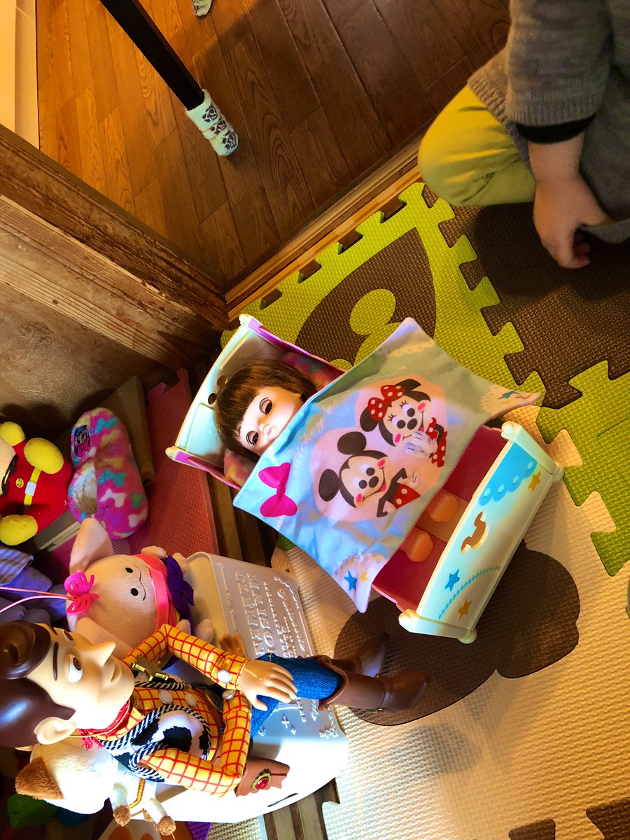 娘がお人形さん遊びしててアイルーが泣き止まないからウッディーが背中の輪っかでおんぶして子守してるらしいw めちゃくちゃ可愛いくて♡思わずパシャリ