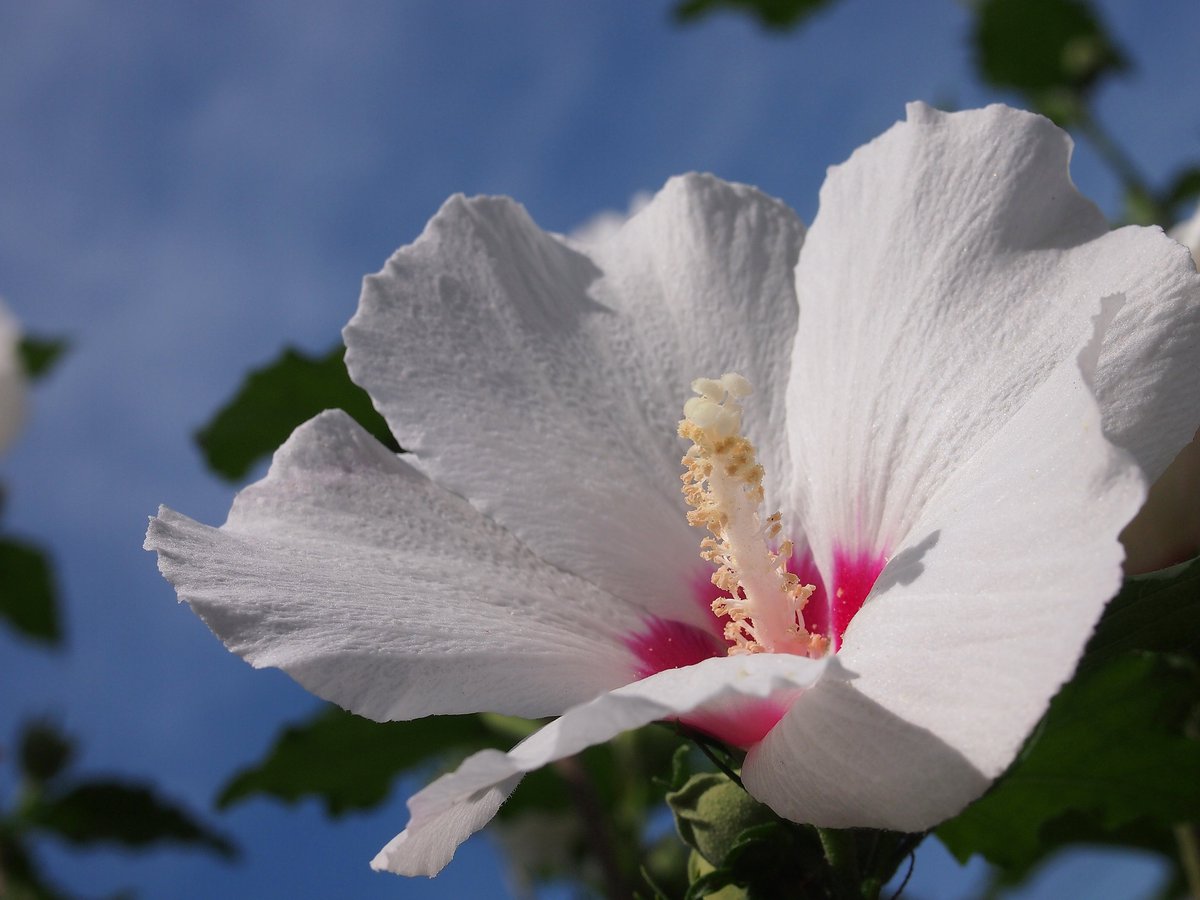 #ムクゲ#日の丸#アオイ科 花期:7~9月 中国、朝鮮半島に分布する落葉低木 韓国の国花 ※花弁の中心に紅のさし色が入り 「日の丸」のように見える品種 pic.twitter.com/7iaNqHtXld