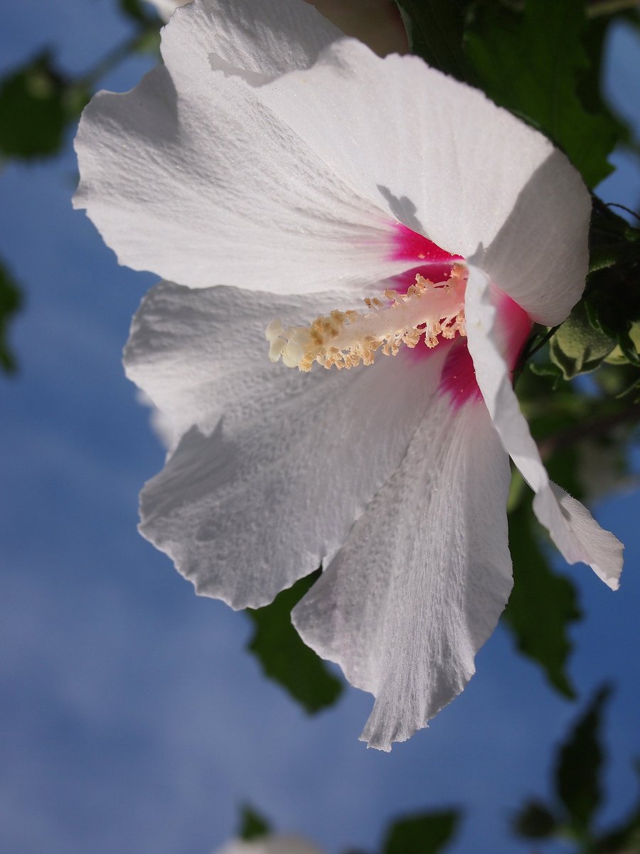 光と影 ため池のそばで 涼しそうに咲くムクゲを見つけた ムクゲとフヨウの違いを調べたら ムクゲは花より葉が小さくて フヨウは花と同じくらいだそうです