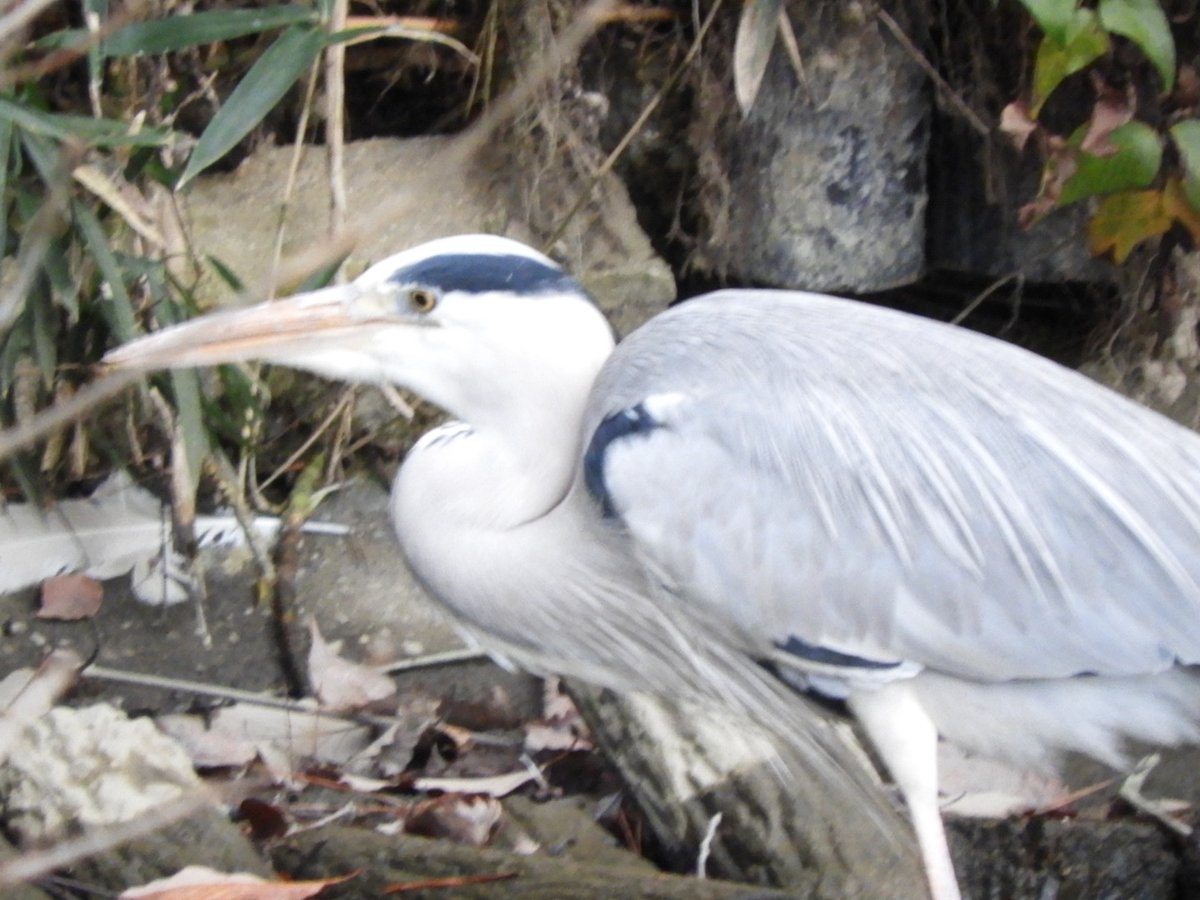 東京都と神奈川県の都県境の境川・・・。上流(町田)あたりに、アオサギがいますよ。一羽だけ。。。 今日は、ハシビロコウ並みに動かなかったです。笑