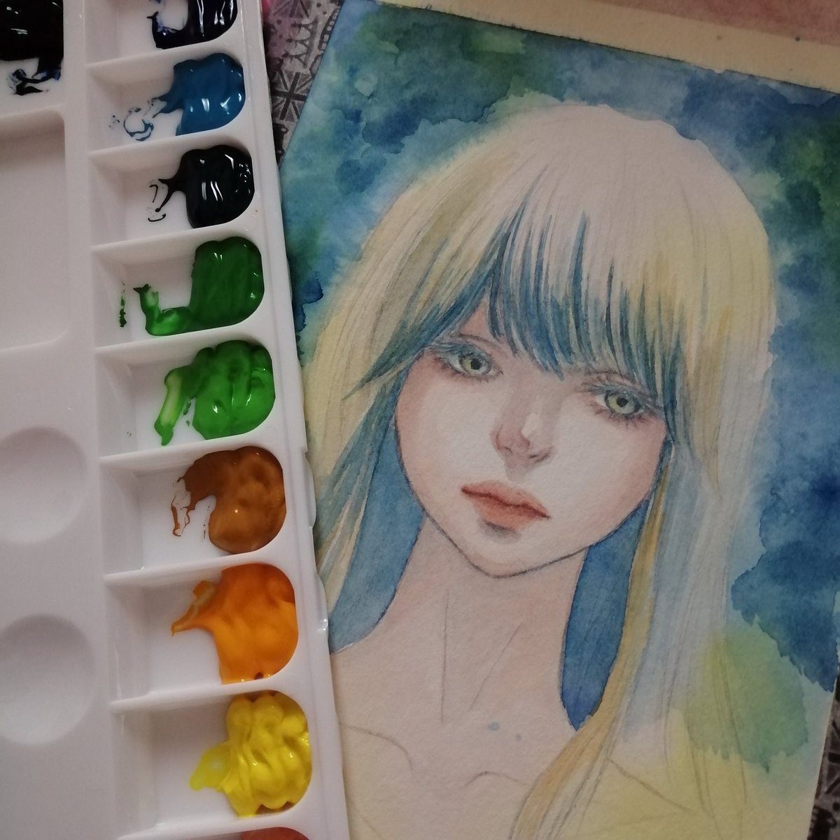 #アクリルガッシュ 水彩広げたついでに、試し描きしてみたんですが、 なかなか難しいっすね(^◇^;) 水で塗ってからじゃないと滑らないんだなぁ(^◇^;) pic.twitter.com/WxYauNoijn