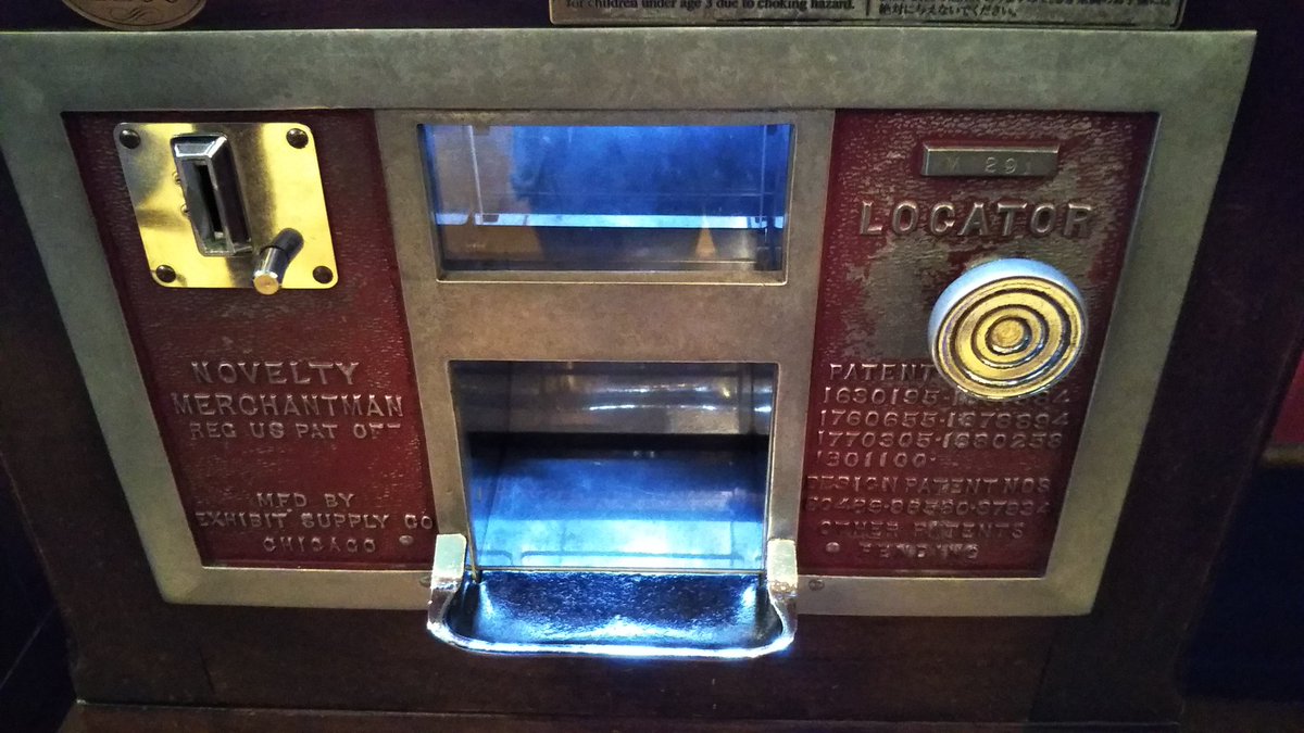 こちらのクレーンゲーム機もエックスベットサプライ社製。こっちも1930年代のもの。クレーンの回転機能は今でも使用可能。