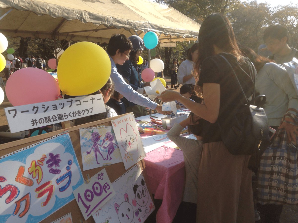 井の頭感謝祭・屋外ワークショップ「井の頭公園らくがきクラブ」終了しました。ありがとうございます!今回初めての試みだったのですが、参加者の皆さんが楽しそうで本当に良かったです。