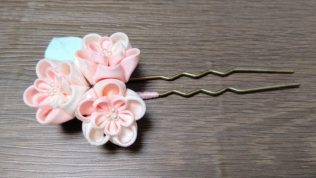 成人式、ウェディングに合うふんわりとしたヘアーオーナメントを制作中です
