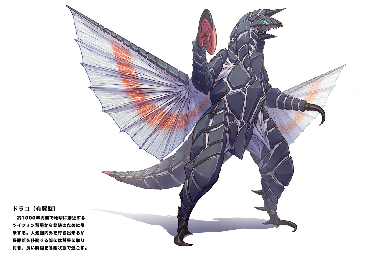 ドラコ雌雄/パワードドラコ ドラコ一族を統一規格で描きました。全体に昆虫と爬虫類のハイブリッド感を強調。パワードの方は袖と裾をベクタードノズルに見立ててみました。