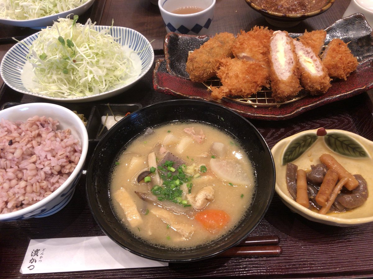今日は私用でお休みをいただいていました(*´꒳`*) 用事も全て終わり、とんかつ浜勝に初来店(๑˃̵ᴗ˂̵) ランチでバラエティかつ膳の黒豚豚汁セット٩( ᐛ )و