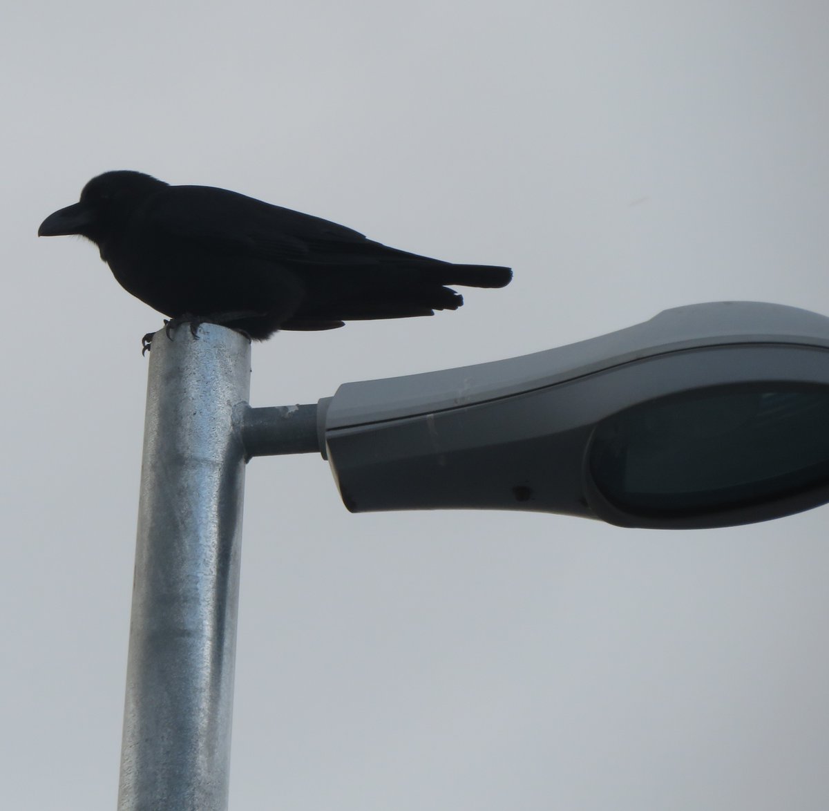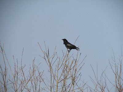 午後から風が強かったので カラスとまっていても飛ばされそうなので体を低くしている。んだろうね。