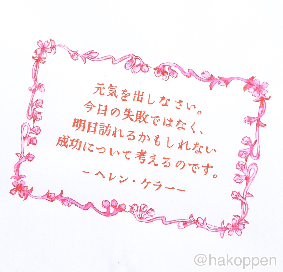 名言を書きました。その13 ヘレン・ケラー氏の名言を書きました。有名な三重苦の方。 なのに、とてもポジティブな名言が多いんです(´ω`゚) 枠は希望を感じさせる花のつぼみにしました。 使用インク: 色彩雫 紅葉、秋桜、夕焼け