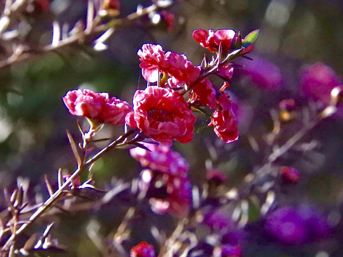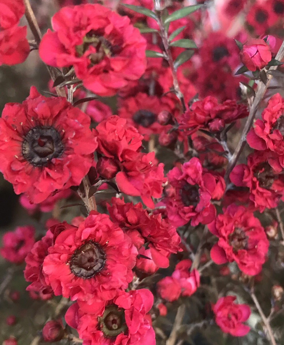 #ギョリュウバイ (御柳梅)が咲いていました ニュージーランドやオーストラリア原産の常緑低木で細い枝に赤い梅の花に似た花を多数咲かせます 花言葉「華やいだ生活」「質朴な強さ」「繊細な美しさ」 pic.twitter.com/7JC7EMZpFo