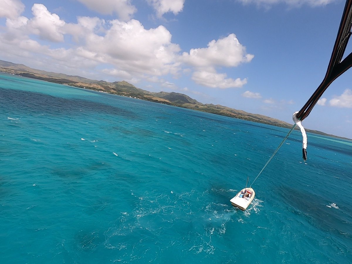 滞在中天気が悪く一度もビーチに行かず何ひとつアクティビティをしなかったけど、帰国日の朝だけパラセイリング体験できた☻