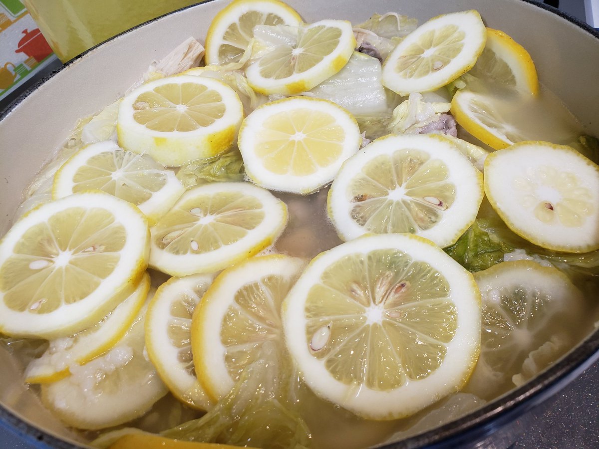 レモン鍋。レモンは国内産味付けは出汁と塩こうじ。 グラタンになばなを入れて焼いた。少し苦い。 昨日のおべんとう